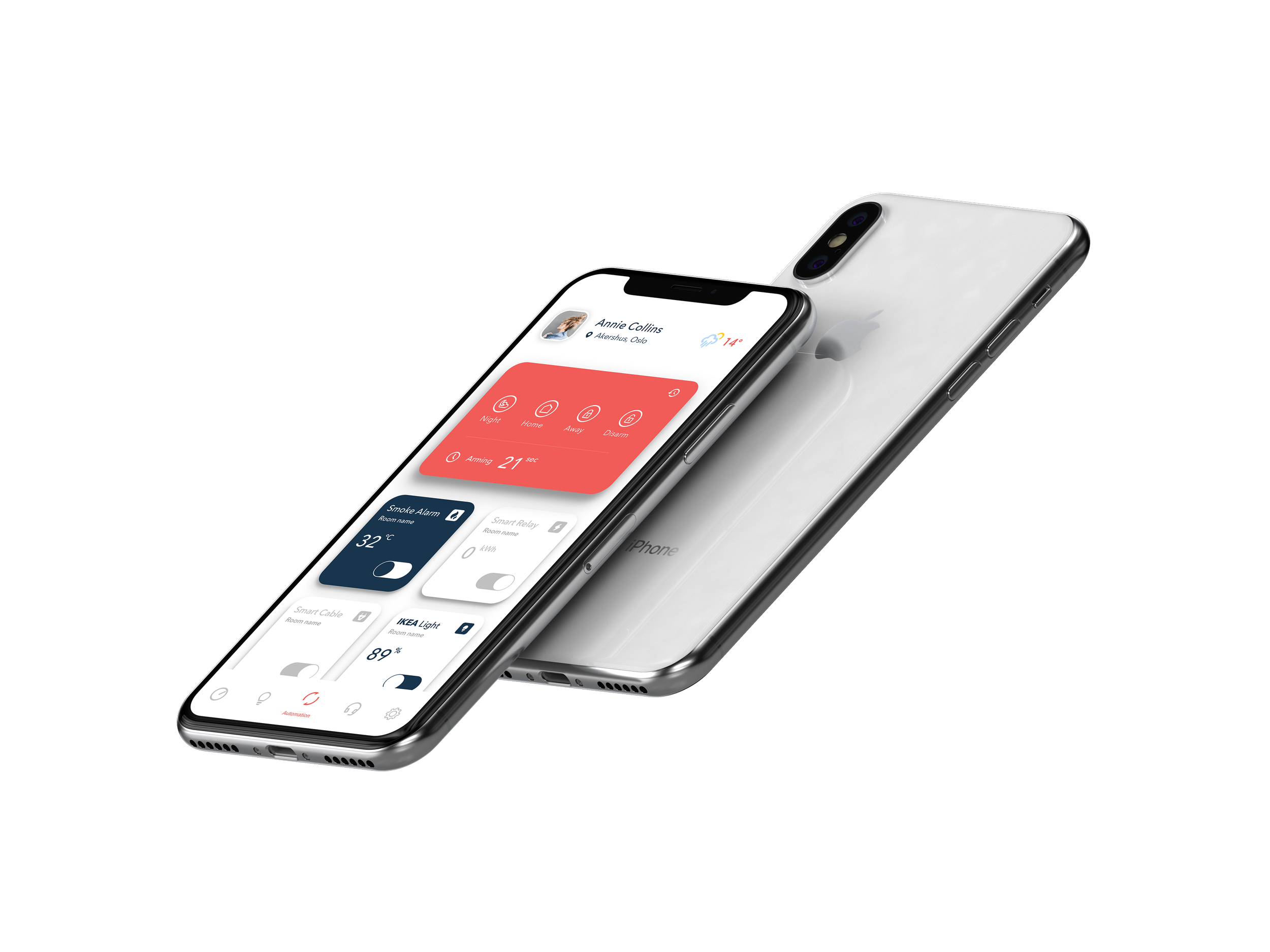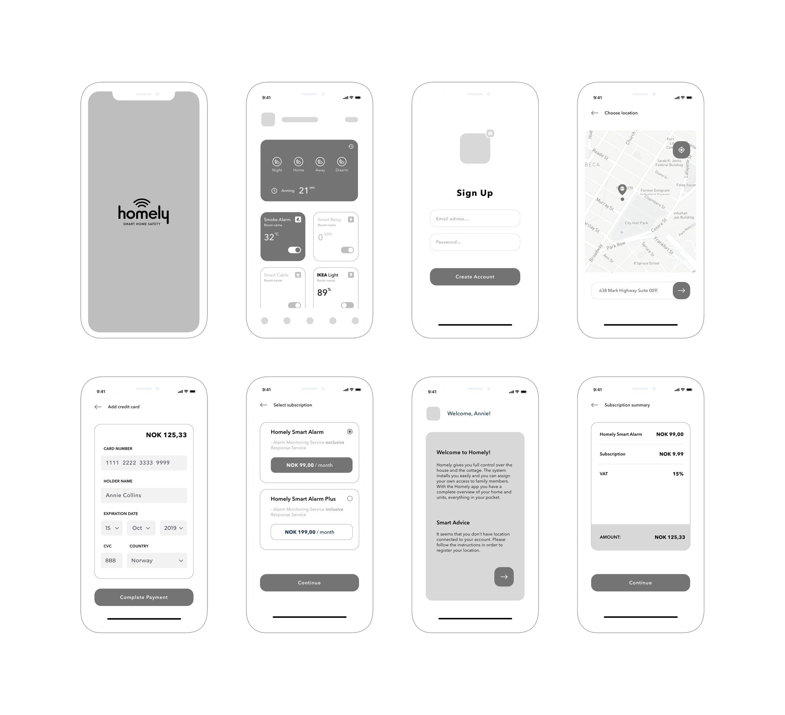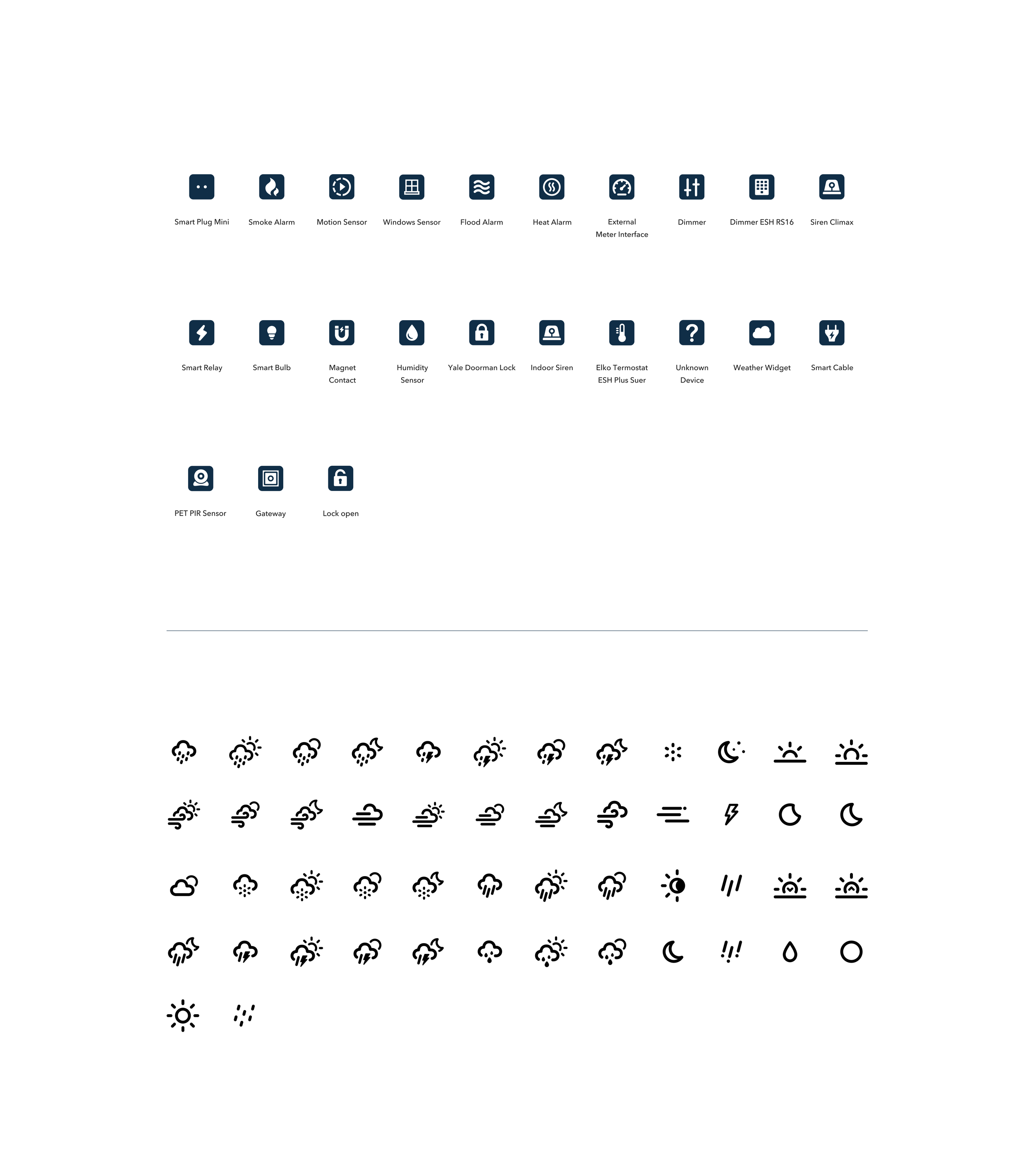 After that we designed a unique icon library for the new Homely style guide. For each device we had to propose a different icon. Each icon has it own state indicated with a color from existing style guide: